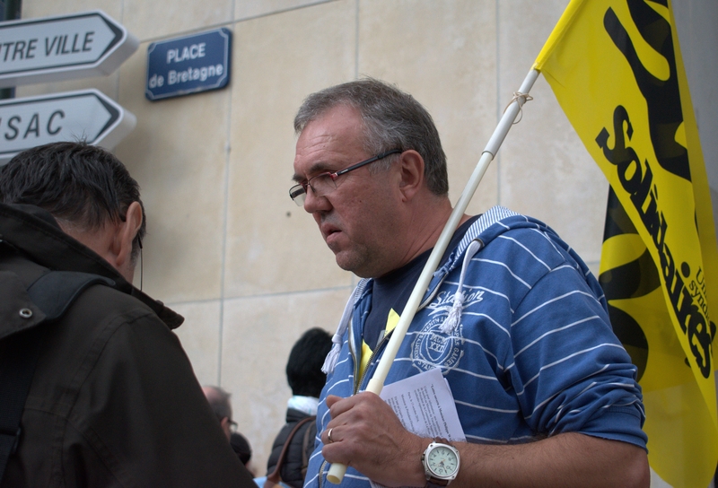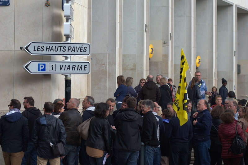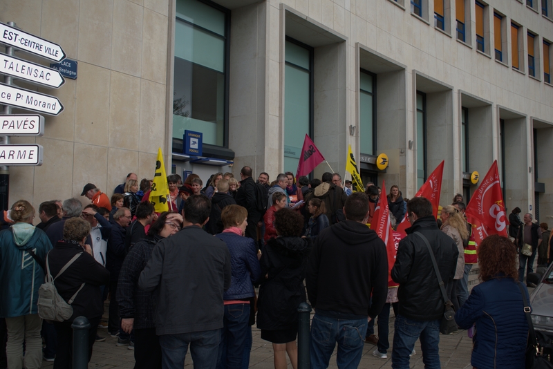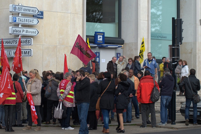 Une centaine de Postier-ères étaient rassemblés ce jour devant le centre financier de Nantes.